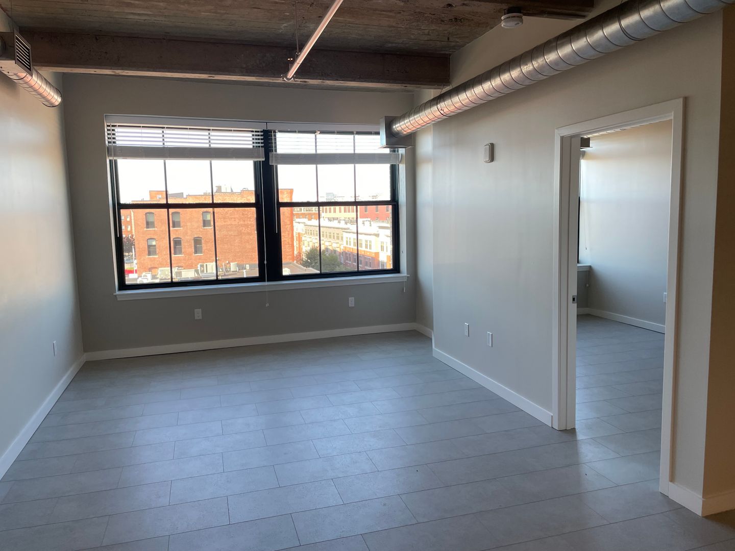 Each apartment has its own personality with its expansive high ceilings that are not always available in traditional apartment complexes. Apartments also feature exposed concrete columns and ceilings, and views of downtown through historic windows. The elegant ambiance of the apartments blends seamlessly with modern features, such as stainless-steel appliances, quartz countertops, an in-unit stackable washer and dryer, a state-of-the-art heating and air conditioning system, and a video intercom.